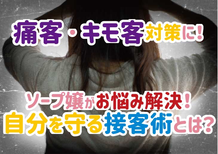 ソープのお仕事をしていると、どうしても悩みのタネになってしまうのが「痛客」や「キモ客」と呼ばれる迷惑行為をするお客さん。精神的にも肉体的にもストレスになることが多く、新人さんだけでなく現役の風俗嬢さんにも困っている人は多いのではないでしょうか。